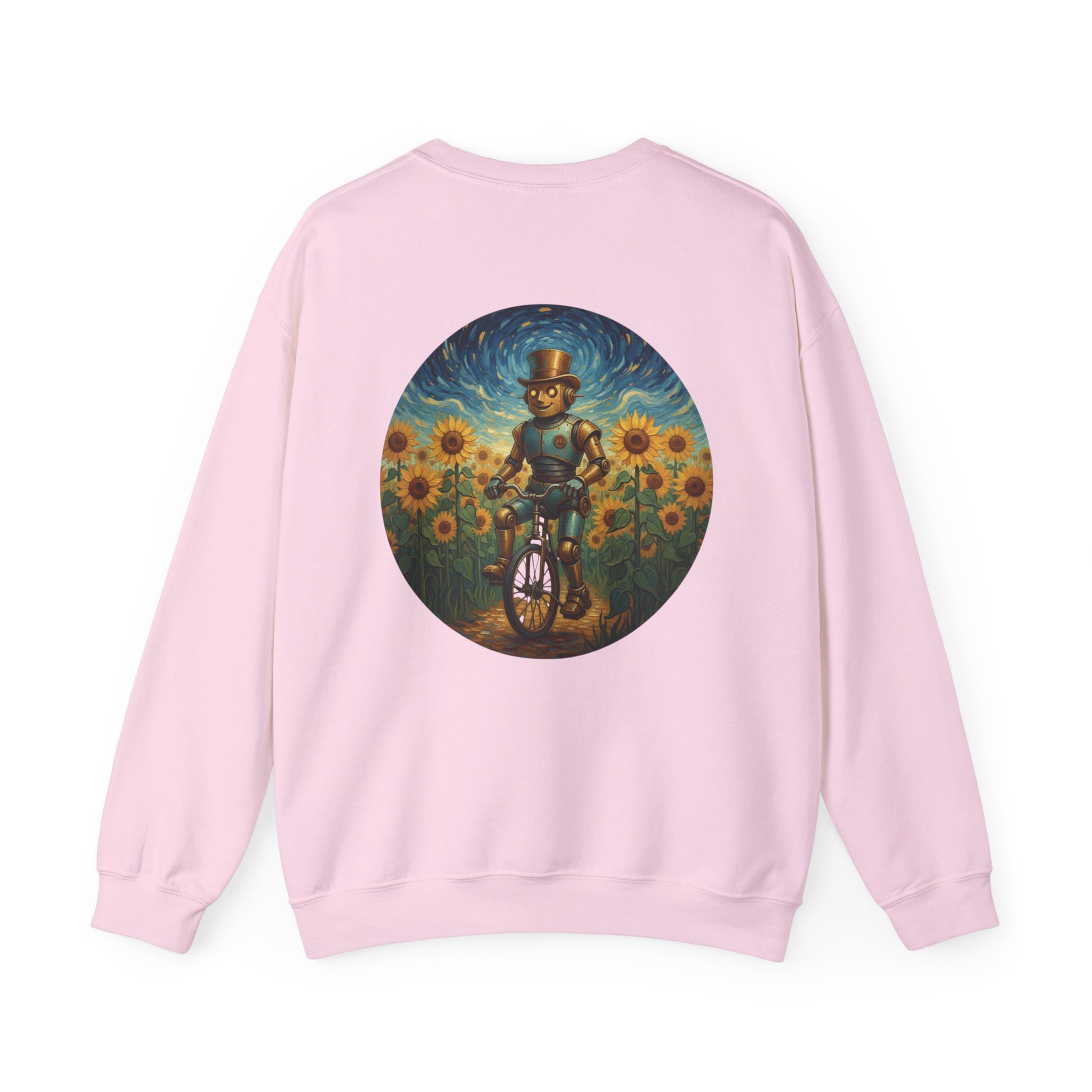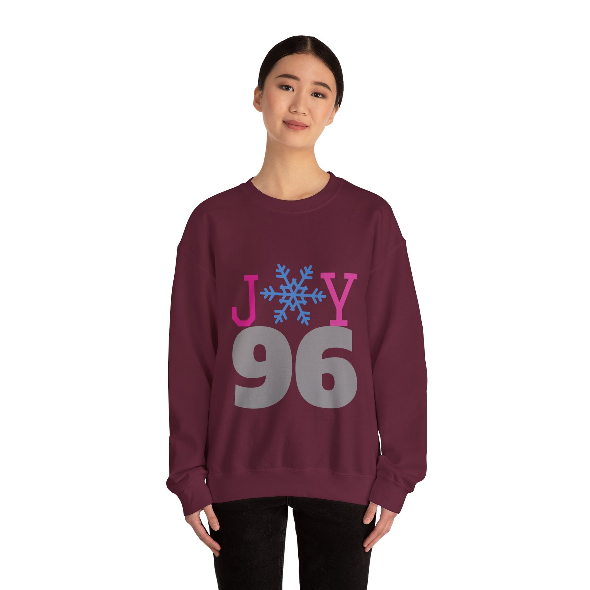 Crewneck Sweatshirt — Joy 96 Snowflake Front & Sunflower Cyclist Back